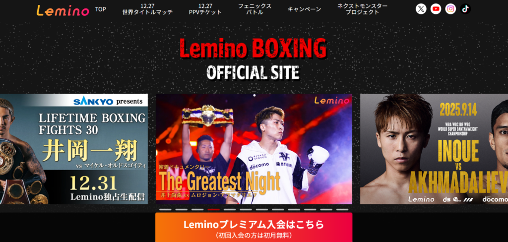 2025年9月14日に開催された「井上尚弥 vs ムロジョン・アフマダリエフ」などのトリプル世界タイトルマッチもLeminoで無料生配信されました。